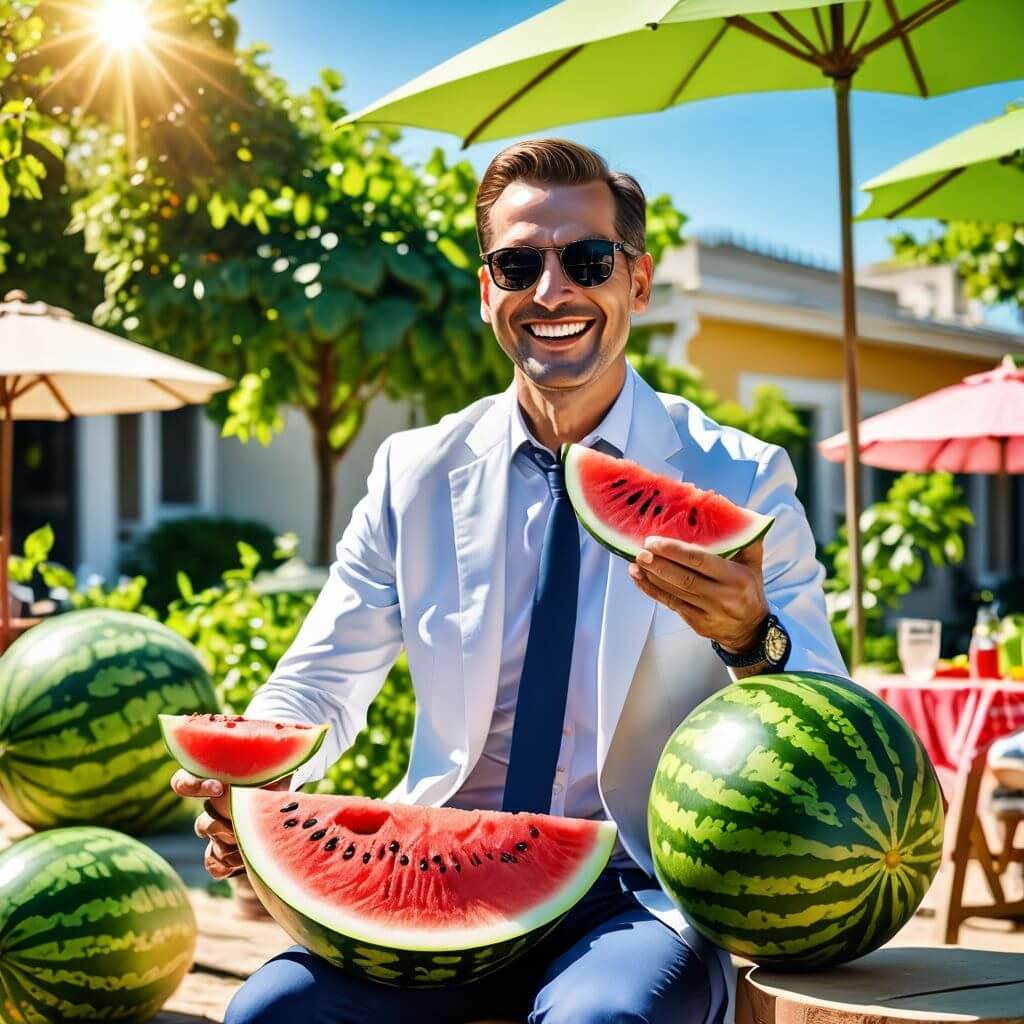 冷た~いスイカをたべて、のりきります。